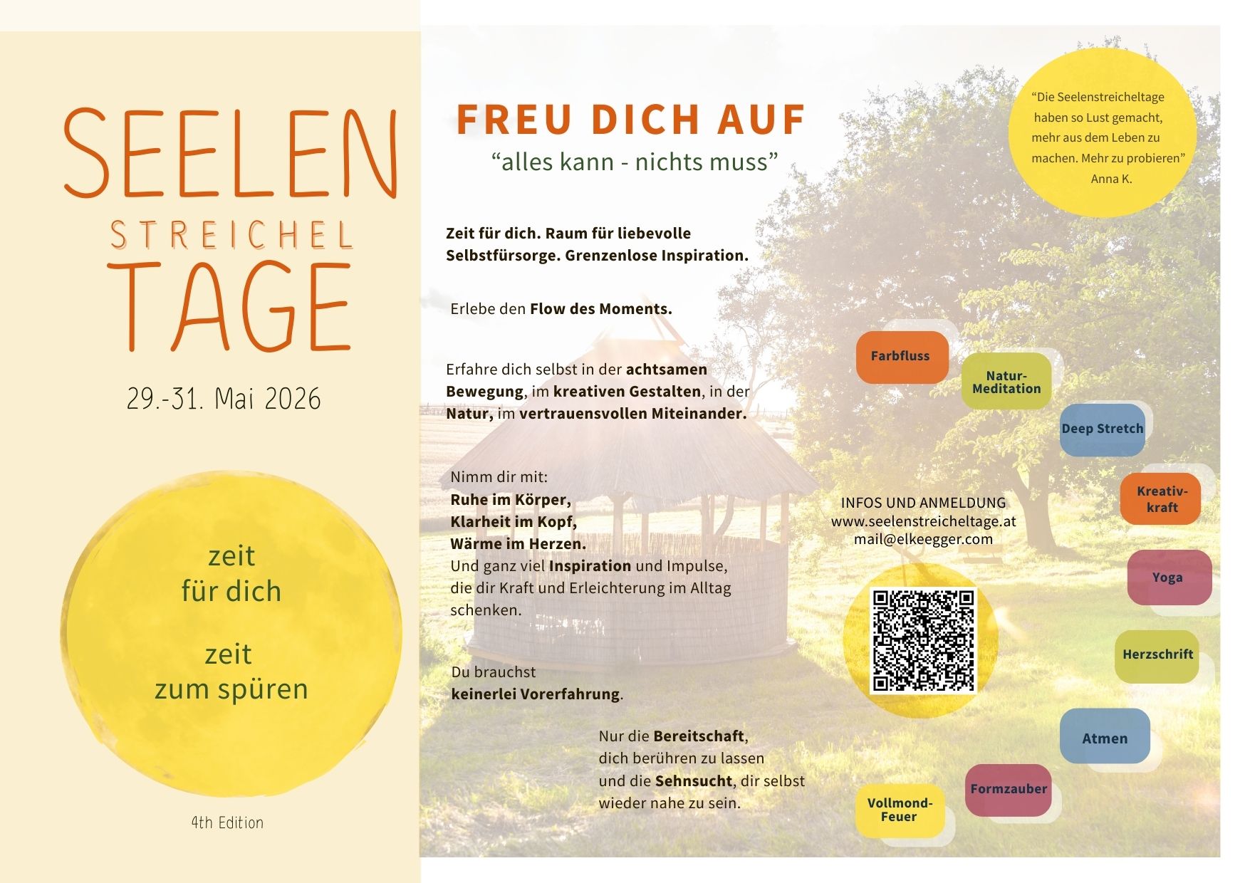 Du bist interessiert an Veranstaltungen am Haarberghof oder in Eltendorf / Burgenland? Dann schreibe uns einfach eine eMail unter info@haarberghof.com.